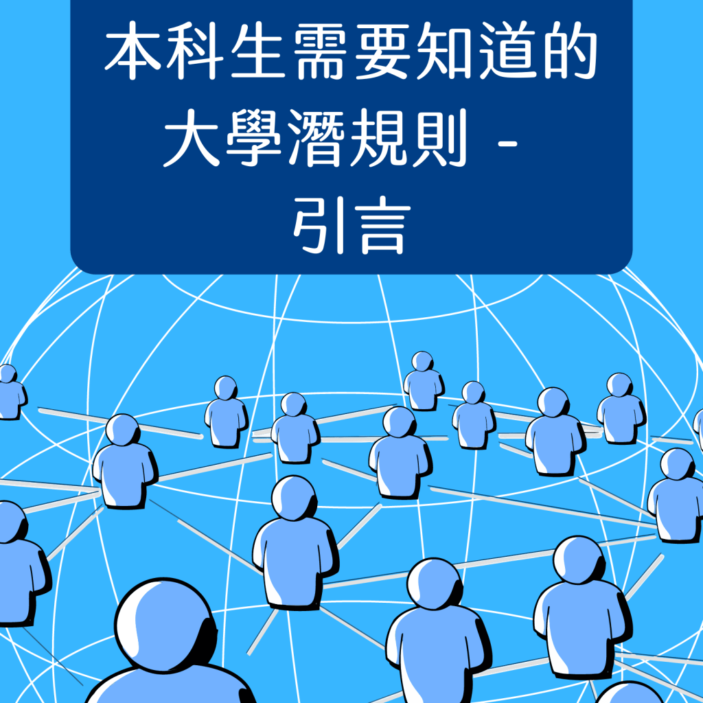 在這個本科生系列裏面,我會分享一下自己覺得本科生需要知道的一些在大學裏面的潛規則。正如研究生系列一樣,我都必須「戴上頭盔」,這裏不會分享網上聽來的秘密,說誰誰誰如何給某教授「着數」讓他在某學科成績拿到優異成績,不會說有什麼方法可以令到同學的某些科目從不合格變成合格,不會分享如何可以在考試作弊而不被發現。在學術圈這麼多時間,這邊聽來那邊聽來的例子也當然有一些。始終同學也是人,教授老師也是人,不會是完美的。但是這些旁門左道的方法,同學們所得到的好處都將會是短暫的,長遠都不會有所成長。東窗事發,同學們可能會得不償失。如果是這樣子,還不如把心態調整好,了解自己所需要的,思考一下如何可以在大學裏面過得愉快一點,充實地過這四年的大學生活更好。