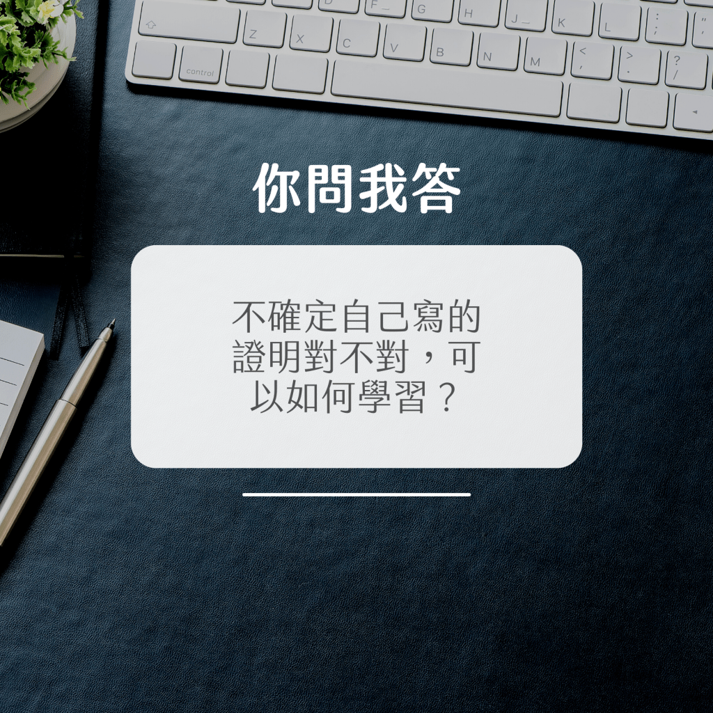 當然,自己摸索的方法不一定最有效。網上有很多不同的教材,很仔細的教授不同撰寫證明的方法。這些就跟我們從小學習英文科一樣,學習不同的文法。這些方法本身當然可以背下來,但是如何靈活運用還是需要同學們自己的經驗。所以最好的方法,還是多加練習。就跟我們學習語言一樣,需要經驗的累積,慢慢才可以寫出一個嚴謹 沒有漏洞的證明。