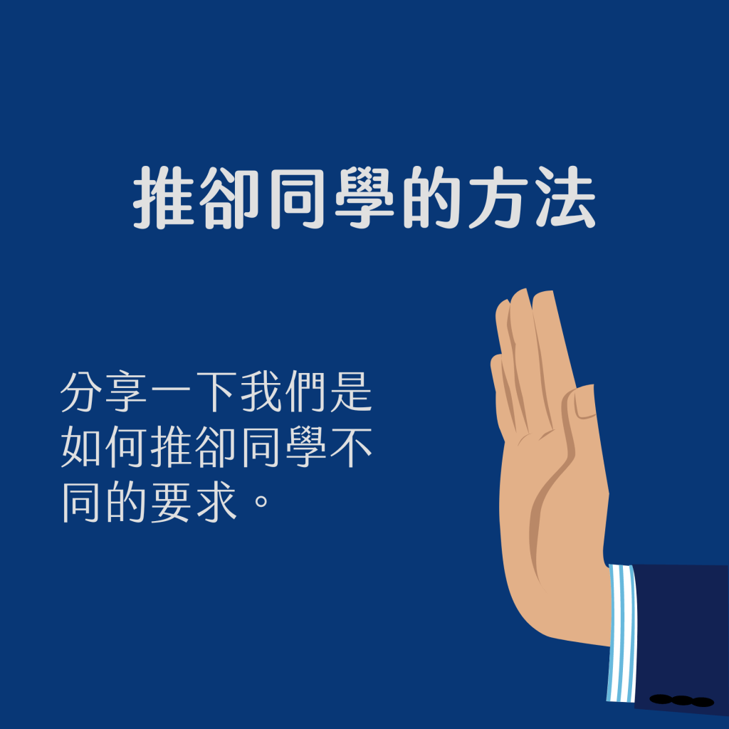 同學們當然對我們有很多要求。這些要求可能包括分數的調整,說自己考試雖然中間的步驟全錯,可是答案是對的,要求我們都給他們給分。可能是科目最後成績不如自己所想,希望我們幫他們更改成績。這些關於考試成績分數等等調整的要求,應該都不難處理,只要我們沒有發覺有改錯的地方,而且批改方法都一視同仁,就不需要太放在心上,只需要跟同學解釋我們不可能為他一個人更改評分標準,那就可以了。當然有些同學會死心不息,不肯離開,如果真的是這樣子,我自己傾向不跟他面對面討論這個評分標準是如何的公平公正,只會說我回去想一想。當然這些想一想的結果,大多數都會保留這個已批改的分數。自己覺得這就可以避免同學們有機會在辦公室跟我們大吵大鬧大哭。讓他們冷靜一下回家跟其他朋友傾一下,這也是一個解決方法。