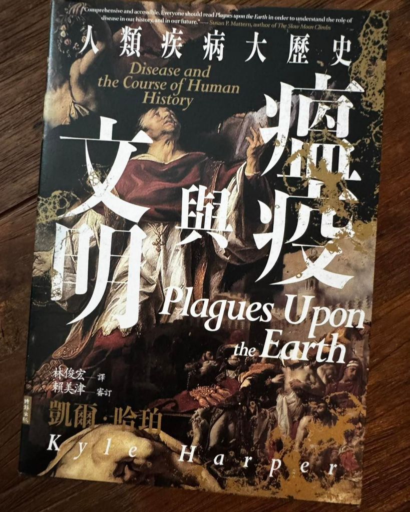 這是一本十分有趣的書籍,作者從 2017 年開始撰寫,歷經 2021 年新冠肺炎席捲全球的影響,終於完成並出版。直到 2023 年,中文版才問世。作者本身專注於研究羅馬帝國興衰與疾病的關聯,因此這本《瘟疫與文明》可以說是作者將自身研究成果擴展,探討疾病如何與人類歷史相互影響的成果。這本書雖然是一本歷史書,但其中一個重要的觀點是,人類歷史上各個時期社會的進步,並非完全取決於是否有傳染病的存在,而是人類與各種生物及社會因素相互作用的結果。然而,這本書不僅僅是一本歷史書,更是一本科普書籍。書的開頭就為讀者上了一堂科普課,首先簡單介紹了人類病原體的五個分類群,包括病毒、細菌、原蟲、蠕蟲和真菌。由於真菌對人類的影響較小,作者並沒有花太多篇幅討論,而是用大量的篇章闡述另外四種病原體如何扮演著重要的角色。書中也簡單介紹了人體免疫系統和一些防禦機制,以及病毒的傳播方式。作者比較了人類和其他靈長類動物身上的寄生體數量,發現人類病原體中,宿主範圍有限的病原體數量異常多。換句話說,有大量的病原體專門感染人類,而其他靈長類動物的病原體則不會針對特定的宿主物種,而是適應並感染各種不同的宿主。
